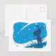 This cute whimsical cartoony Postcard designed in the blue tones features cute stargazing Puppy. Little funny Dog stands on the top of the hill watching starlit sky and meteor shower. Shooting star crosses the blue night sky. Ideal postcard for stargazers and dog lovers.