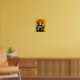 In a vibrant midcentury palette of crimson, teal, and warm ochre, this lively dog artwork embodies companionship and playful spirit. Whether displayed in a home library or gallery wall, it sparks joy and affectionate conversations, celebrating loyal friendship and boundless energy.