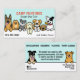 This playful business card features a variety of happy dogs including a German Shepherd, Pomeranian, Schnauzer, Rottweiler, and a cute Doodle mix. With plenty of space to write in your contact details, this colourful dog lover's business card allows you to share your phone number, address, tagline, and social media handle. Perfect for dog walkers, trainers, pet sitters, veterinarians, doggie day care services and more. Make a memorable first impression with a fun business card your clients will enjoy keeping and sharing with friends.