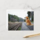 Dog sitting on train station postcard