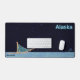 Let 'em know what you do for fun during winter. A dog sled superimposed on a starry background. Text reading, "Alaska" appears in glowing blue and white. You may easily remove this. You may add your own additional text both on the sled bag and at the bottom.