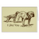 English Setter sniffs a Bulldog's butt with the slogan "I Like You". Funny dog illustration.