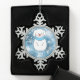 Dog Snowman with Blue Snowflake Bokeh Background Snowflake Pewter Christmas Ornament