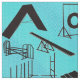 Dog agility equipment silhouettes show against a blue green background making a colourful pattern to remember one of your favourite dog sports. The background colour is not solid. It has intentional variations to create a slightly broken pattern.