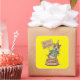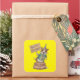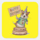 Dog standing on cake holding happy birthday sign square sticker
