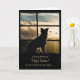 A dog condolence card featuring a silhouetted dog with sunlight streaming through its fur, paired with a simple yet heartfelt sympathy message.