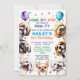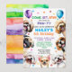 Dog Invitation Birthday Party Invites. 8 years old (you can change the age). For boy or girl. Cute happy, smiling puppy illustration invitation designed with confetti and balloons surrounded by popular small dog breeds such as, shih tzu, pug, maltese, chihuahua, poodle, and beagle. All editable text with the child's name, age, time of the party, address, and RSVP. You can change the back image to your child's photo.
