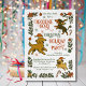 Dog themed Holiday Party Invitations. Features Features a pack for dogs, Afghan hound, pug and dachshund with Santa hats. Perfect for an office, party, birthday, house warming party or a friendsmas party! . All wording can be changed! To make more changes go to Personalise this template. On the bottom you’ll see “Want to customise this design even further? Click on the EDIT using Design tool. From there you can change some of the fonts & some colours, move things around or delete what you need. A little midjourney generativecontent combined with hand drawn elements.