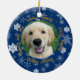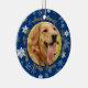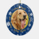 A double sided photo ornament wreathed in blue with crisp white snowflakes shows off two photos of your best pal, then and now. Create a wonderful keepsake of your dog's life to date with a puppy photo on one side and an adult dog photo on the reverse. Add pet name and other sentiments in four templates in a handsome thick script font. A treasure for your holidays to come or a cherished gift for the pet lovers in your life.