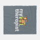 Your dog may be the perfect therapist. Your dog knows you better than anyone. Your dog doesn’t judge. Your dog is the best listener you’ll find. Your dog keeps all your secrets strictly confidential. Best of all, your dog is affordable, doesn’t require an appointment, and is available 24/7! Your time is never up! Introduce your awesome therapist to the world with this cosy fleece blanket. Type is a slightly grungy white. Orange chequered dog pops on a yellow-green background. You choose the background colour to suit your style and decor. Blanket is available in 3 sizes so you can cuddle up no matter how big or small your pup!