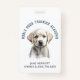 Adorable illustrated puppy, dog training business badge. Promote your services to customers and visitors. QR code on the back. Offering our badge attachments: choose from metal clip, retractable or lanyard