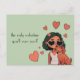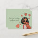 This valentine's day card holds a cartoon-style illustration of a girl and her dog cuddling. There is a customisable message with default text of "the only valentine you'll ever need!". It is the perfect Valentine's Day card for dog lovers!