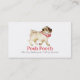 Cute watercolor art posh pooch pug walking business card. Perfect for dog walking professionals, pug carers, dog trainers, dog kennels, and dog fitness or pet stores. Personalise with your name, address, website, and contact details. Original watercolor pug painting and design by Sarah Trett for www.mylittleeden.com