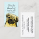 Pet Sitter Dog Walker Business Card. With a drawing of a pug puppy. This business card will be perfect for Dog walker, Pet Groomer, Pet Care, Pet Sitter business All text style, colours, sizes can be modified to fit your needs