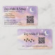 Custom business card for dog walkers featuring pink and purple celestial background with moon and stars on both sides! Try it out to see how it looks! Simply add your contact info and custom URLs to your website, social media, and/or price list. You have the option of adding one or two URLs. There is another QR code on the back with a text area and little paw prints. Several card options and paper styles available.