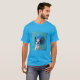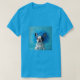 Funny t-shirt with picture of a white dog wearing a blue wig