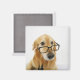 Dog wearing tie and glasses sitting on chair magnet