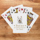 These adorable West Highland terrier wedding favour playing cards are the perfect way to show your guests you appreciate them. Includes a watercolor Goldendoodle graphic as well as the saying "Thank you for celebrating my humans, love bisquit" in pretty gold font.