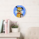 This wall clock is made from an original acrylic painting by dutch illustrator Ans Collijn©. It shows a yellow funny dog and a black and white cat. Friends for ever. Pick your own clock colour.
