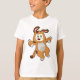 The t-shirt feels and looks great quality, a good thick cotton. It will be a little big for my son, but that means he will be able to wear it and not out grow it too soon. The print was as described on the order when personalised. True size, shape and colour T-shirt- thanks.