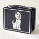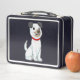 This is a standard metal lunchbox that appears to work just fine. We designed this box ourselves with an uploaded photo and custom text on the front and back. It looks absolutely beautiful except the front of the lunchbox is not centered like it shows in the photo. The print borders don't align with the inset flat part of the box where the preview photo online showed it perfectly centered in there. The back looks nice and centered though.