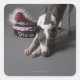 Dog with diva bowl, sniffing floor square sticker