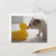 Dog with plastic duck postcard