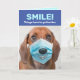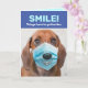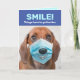 This Dachshund may or may not be smiling under his face mask, but at least there's a cartoon smile on his mask. Send a smile to your loved ones while we stay socially distant and shelter in place. Things have to get better