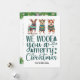 Spread holiday cheer with this adorable Christmas card, featuring three cheerful pups dressed in festive sweaters! This design showcases a playful "We Woof You a Merry Christmas" message, perfect for dog lovers and pet owners alike. The lineup includes a lively Jack Russell Terrier, a sweet Corgi, and a joyful Shiba Inu, each sporting cosy winter sweaters with holiday patterns. Surrounded by Christmas trees and hearts, this card is both heartwarming and humourous. Add your family name for a personalised touch and send some festive "woofs" to friends and loved ones this season!