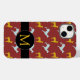 Customisable iPhone case with blue and yellow dogs pattern on dark red background + black round tag for Monogram. You can easily change monogram (font,colour, size and position) by clicking the customise button. Perfect for Chinese New Year of the Dog or birthday (people born in Dog year).