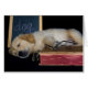 Golden retriever puppy with chalkboard and old book.