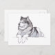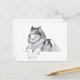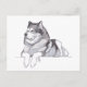 Ink drawing in black, white and shades of grey of an Alaskan Malamute.
