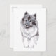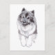 Ink drawing in black, white and shades of grey of a Keeshond.