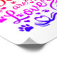Drawing of dog paw prints, hearts and typography.