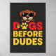 Bold and humourous, the Dogs Before Dudes design is perfect for dog lovers who know where their loyalty lies. Featuring a cool cartoon dog with sunglasses and paw print accents, this design is playful and eye‑catching.