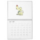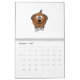 A calendar that contains dogs' cartoons. Each month hold a different cartoon of a dog.