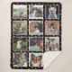 Get cosy with this cute cat and dog photo blanket featuring twelve custom photos framed in white over a colourful paw print patterned black background. Add your own special touch with your favourite pet photos.