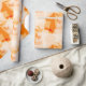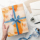 The wrapping paper in the image features an abstract, artistic montage of dog silhouettes in warm, earthy tones—muted oranges, yellows, and creams. The design is subtle and elegant, making it ideal for dog lovers who appreciate a sophisticated, modern aesthetic.