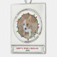 This cute Christmas puppy photo keepsake ornament features a bright, beautiful strand of Xmas lights framing your dog's photograph in a festive circle. Customise your own message on the bottom in red for a colourful holiday gift. Personalise for your pup's first Christmas with your family.