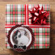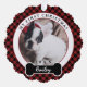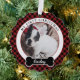 Dog's First Christmas Ornament with photo of your pet, their name and year they celebrate their very first Christmas. Red and black buffalo plaid chequered pattern background makes this a classic keepsake pet ornament.
