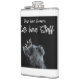 Well made flask, a little better than I had expected. Flask came in clear plastic box which gave it a nice presentation when I took it out of the zazzle packaging. Image is not printed on flask but on sticker. Don't know how this will hold up I haven't used it yet. This would make a Great gift! I plan to purchase more for friends! Cheers. I thought a little brighter than computer. Very crisp, writing wasn't