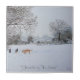 This original little snow scene landscape painting on this art tile shows two mixed breed dogs, having fun in the fresh carpet of crisp snow. The brown and black dog is accompanied by his friend a german shepherd/ golden labrador cross breed dog, the two of them are gazing across the snowy landscape to the snow covered rooftops of the houses just below the hill. The two doggy friends have just been playing amongst the snow laden trees and they're taking a little breather from their doggy fun and games. This original art poster print of two dogs in the snow makes a great little piece of landscape art to brighten any corner of your home or office. The original watercolour snow landscape painting is titled "Friends In The Snow" The scene is Woodford golf course in South Woodford on the edge of East London England. This is a customisable art tile, you can personalise it with your own text