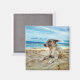 Dog's Relaxing Day at the Beach, Ocean Sand & Sun Magnet