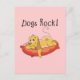 A cute brown dog relaxes happily on her puppy bed and black text reads "Dogs Rock!" on our Dogs Rock T-shirts, mugs, mousepads, buttons, cards, and more!