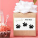 A cute sticker featuring black dog paw prints with a rawhide bone, the saying dogs rule can be changed if so desired.
