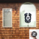 Cute Border Collie illustration with text saying "Dogs Welcome"