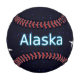 A simple white silhouette of a dog sled on a starry background. Text reading "Alaska" appears in glowing blue and white. Add your own additional text if desired.