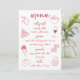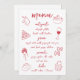 Share your special occasion dinner menu with this beautiful Italian inspired design featuring handwritten style cursive lettering accented with hand drawn food illustrations in tomato red. Illustrations include bow tie pasta, wine, Sicilian lemon, tomatoes, pizza, spaghetti on a fork, pastries, and coffee. Customise the menu title and up to four courses.