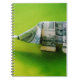 Dollar bill origami Elephant on Green background Notebook