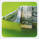 Dollar bill origami Elephant on Green background Square Sticker